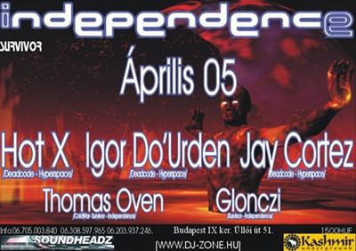 bulikat, amelyeket mára már egyre több partizni vágyó arc látogat. Remélhetőleg ilyen lesz az április 5.-én megrendezésre kerülő independence is amelyen a hazai élvonalból válogatott lineup magáért beszél, a bulin ugyanis fellépnek többek között a Hyperspace nagyszabású hazai techno rendezvény házigazdái és az Idependence