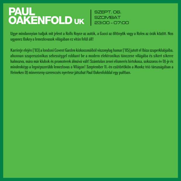 Fellépők: Paul Oakenfold, Monkz, G.U.L.U., Shootie