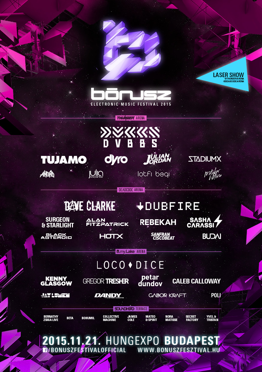 Így most már semmi más dolgunk nincs, mint számolni az órákat, hogy végre kinyíljanak a BÓNUSZ kapui, és kezdetét vegye 2015 egyik legemlékezetesebb éjszakája Közép-Európa legnagyobb beltéri elektronikus zenei fesztiválján!