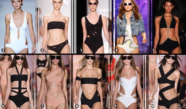 Az egyrészesek, a bikinik, valamint az úszódresszek között is találhatunk ilyen megoldásokat, olykor strasszokkal, kövekkel megspékelve.
