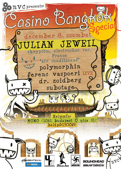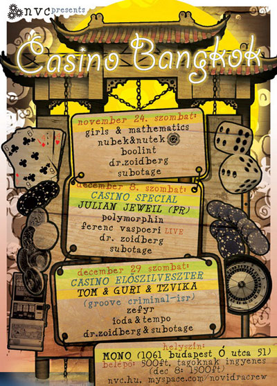 Casino Bangkok ElőszilveszterMost szombaton, azaz november 24-én végre ismét Casino Bangkok, méghozzá egy különleges, electrohouse est formájában.Mono, Budapest, VI. Ó utca 51.