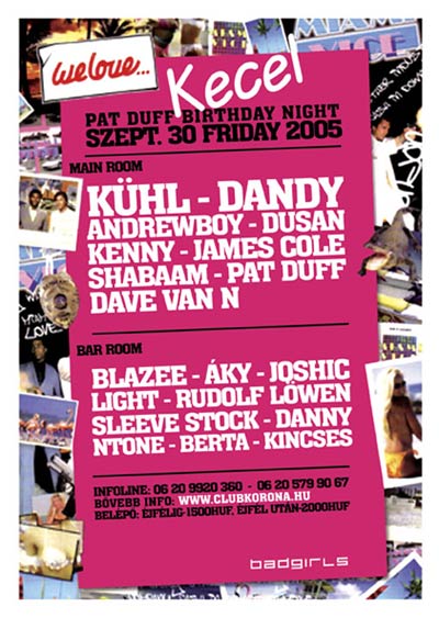 Túl vagyunk a 2005-ös nyári szezonon, néhány open air bulin és persze a Kecel Fesztiválon! Az év hátralévő részében közkívánatra – közönség kedvencek lépnek majd a keceli pulpitus mögé. Elsőként a hazai élvonal, kedvenc rezidens dixósunk Patt Duff szülinapja alkalmából! Februárban Shabaam birthday partiján trombitáltuk utoljára össze a dj barátokat és mindent várakozásunkat felülmúló bulival köszöntöttük fel az egyik házigazdánkat.