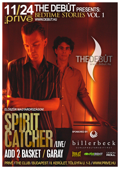 The Debut - Bedtime Stories I.The Debut: "Először is szeretnénk megköszönni, hogy ilyen nagy létszámban eljöttetek Debut Birthday partynkra, s nektek köszönhetően egy óriási party kerekedett az estéből, ráadásul a full house táblát is kitehettük ezen a remekbeszabott estén::?. Novemberi partynkon a szülinapi mulatságot is szeretnénk übereleni, ezért egy fantasztikus dj párost hozzunk el nektek Belgiumból: ők pedig a Spirit Catcher formáció."Prestige (ex Privé), Budapest, II. ker. Tölgyfa utca 1-3.