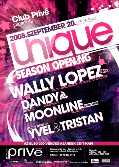 Szeptember 20-án egy önállő saját klub estel a UNIQUE-al veszi kezdetét a dübörgés a Privé falai között.