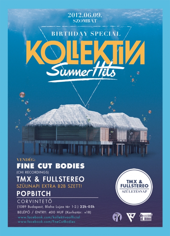 A Kollektiva két alapító tagja, TMX és Fullstereo ugyanazon a napon, június 9-én született. A duplán jeles dátum egybeesik a dj-csapat soron következő Summer Hits partijával, így a szülinaposok több órás közös örömzenéléssel ajándékozzák meg a bulizókat a Corvintetőn. A hab a tortán pedig az est különleges vendége, a hazai elektronikuszenei színtér meghatározó alakja, Fine Cut Bodies lesz, aki alkalmi dj-szettjével járul hozzá a hangulat tetőnél is magasabb fokra emeléséhez.