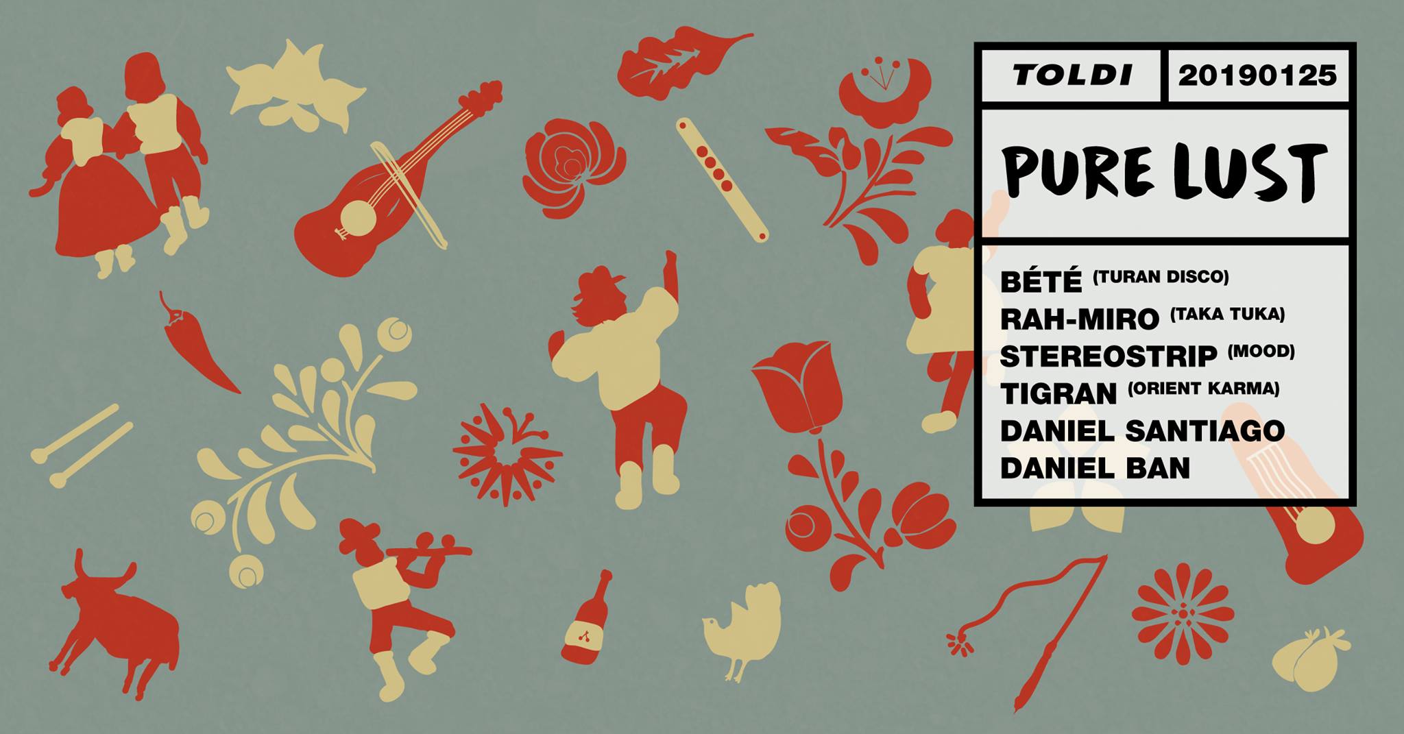 Pure Lust pres: Hazai NyitásEbben az új sorozatban Danival egy kicsit szeretnénk a háttérbe vonulni, inkább teret adva a vendég előadóknak. Régi vágyunk, hogy bemutathassunk olyan fellépőket, akik munkásságát nagyra tartjuk de a budapesti éjszakában sokszor nem jutunk el megismerni a fellépők Pure Lust zeneiségéhez közel álló arcait.Toldi Klub
