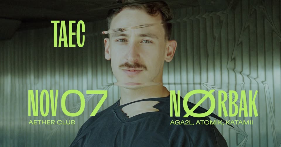 TAEC w/ Nørbak (PT), Aga2l, Atomik, KatamiiA portugál techno színtér egyik legizgalmasabb alakja érkezik a következő TAEC eseményre – Nørbak, aki részletgazdag, feszes és mélyen hipnotikus hangzásával ötvözi a klasszikus techno alapokat a modern intenzitással.AETHER